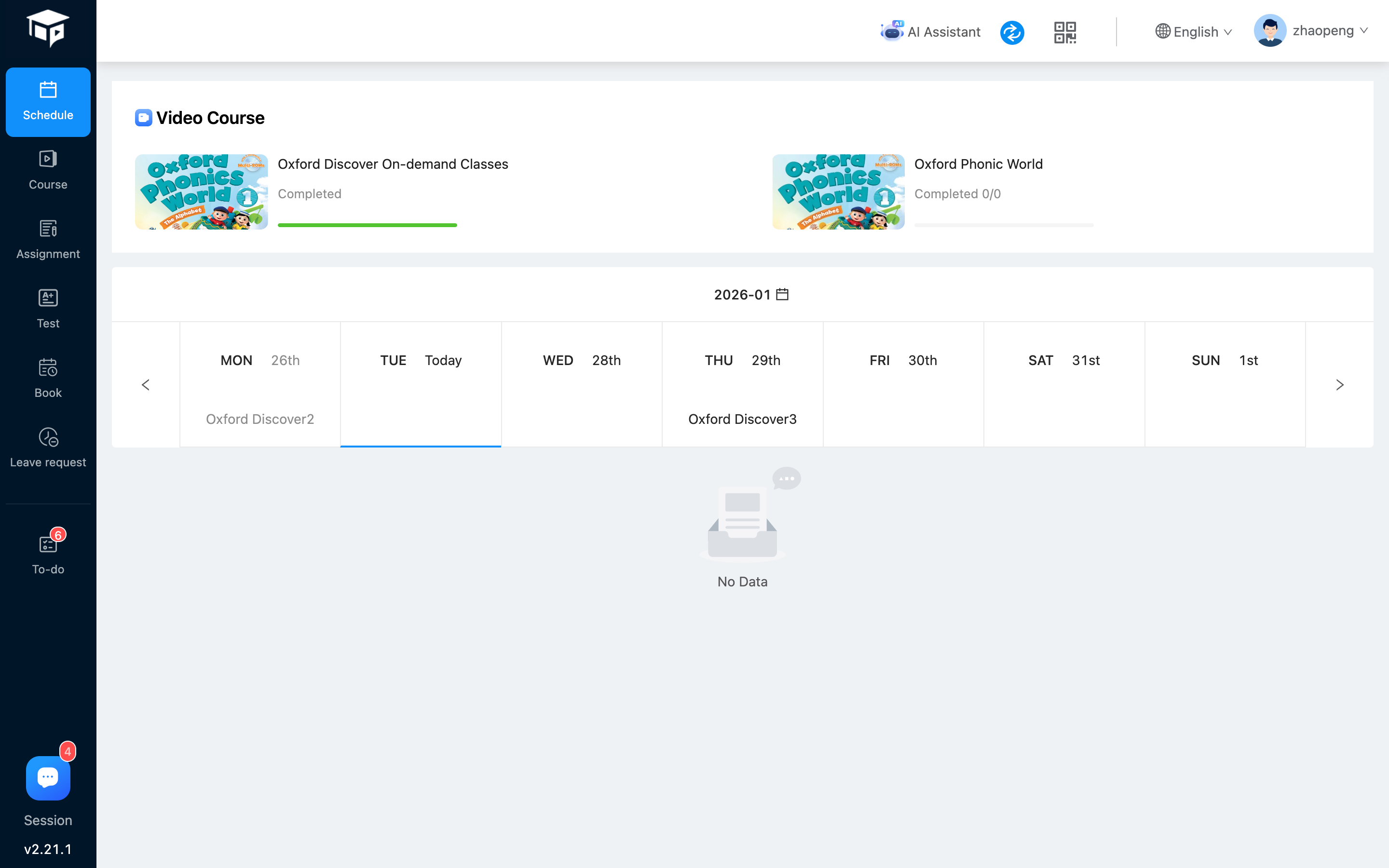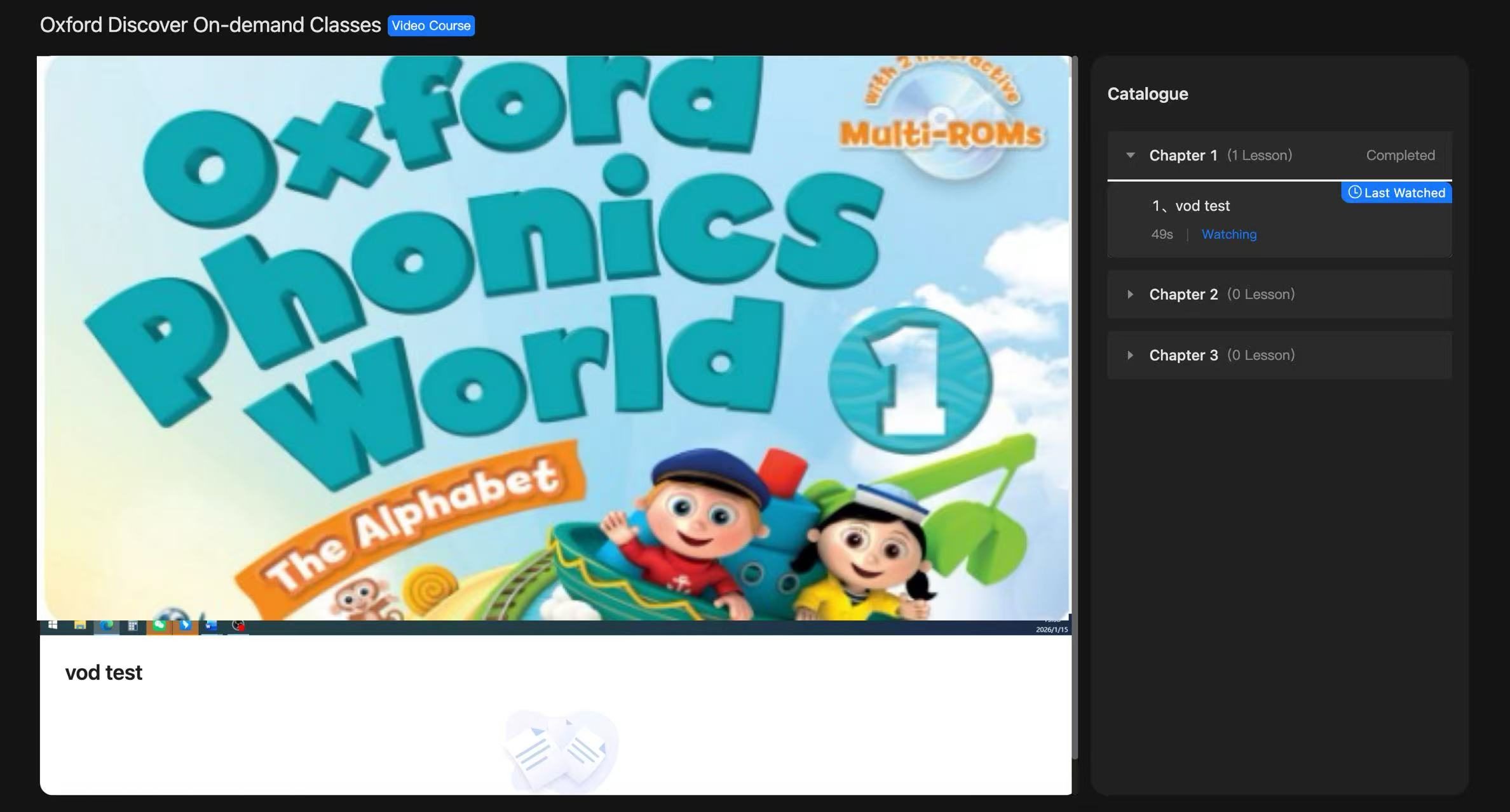 If the current student has video courses that have not yet started or are currently starting, they will be displayed in the red box (above);